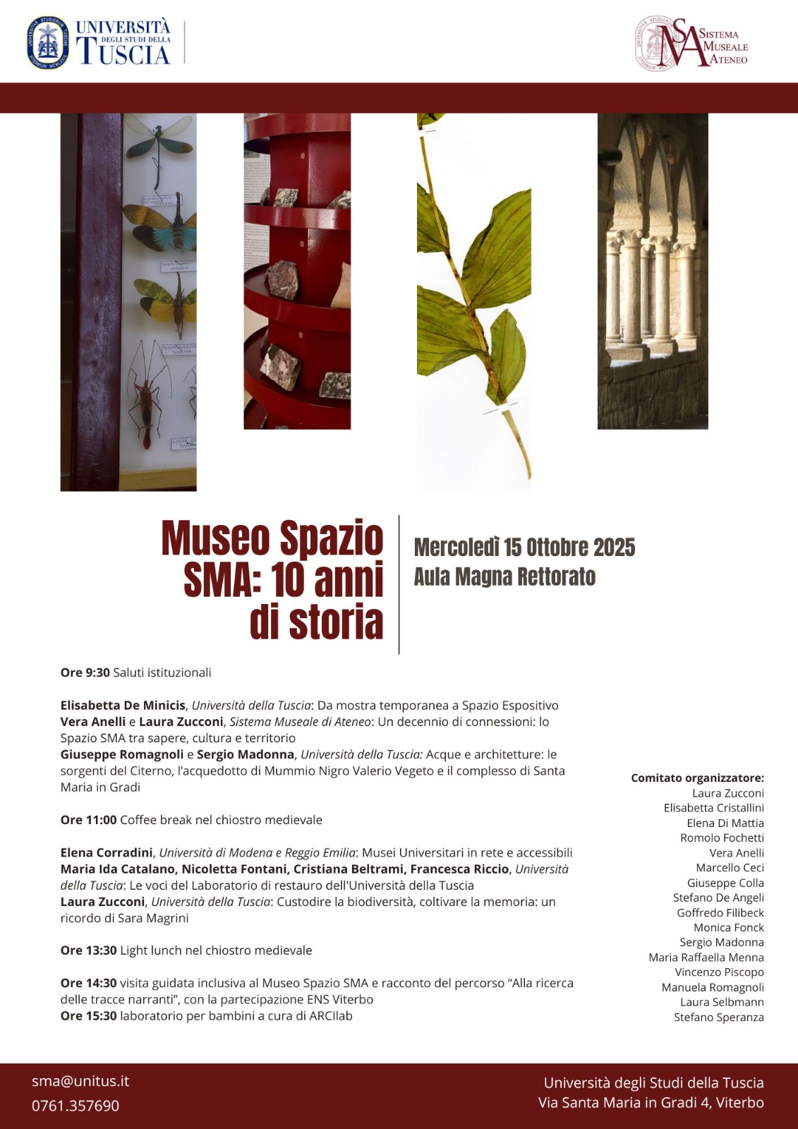 Il Sistema Museale di Ateneo si articola in musei, collezioni e raccolte collegate ai Dipartimenti o ad altre strutture dell’Università e si propone di sostenere e promuovere la tutela e la valorizzazione del patrimonio architettonico dell’Ateneo e delle sue collezioni storiche, demo-antropologiche, scientifiche e artistiche; cura inoltre la conservazione e la valorizzazione del patrimonio museale dell’Ateneo e la catalogazione informatizzata del patrimonio; coordina una corretta esposizione dei reperti, delle opere e delle collezioni ad uso non solo della didattica universitaria, ma anche di un’utenza più vasta, con particolare riferimento alle scuole di ogni ordine e grado; promuove e incentiva la divulgazione dei risultati degli studi e delle campagne di ricerca da chiunque compiuti sul materiale conservato presso le strutture afferenti allo SMA; svolge attività di ricerca nell’ambito delle collezioni museali l’Ateneo e promuove rapporti di collaborazione scientifica con ricercatori ed Enti pubblici e privati, italiani e stranieri, favorendo anche specifici progetti di ricerca dell’Ateneo.