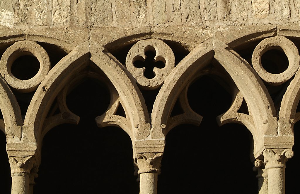 La vicenda edilizia comincia con l’acquisto da parte di Raniero Capocci, giovane curiale viterbese di nobile famiglia, della piccola cappella di S. Croce, che Raniero pone con prima pietra dell’edificazione di un vero e proprio complesso conventuale, che verrà poi donato ai domenicani. È il XIII secolo. Sono gli anni di papa Innocenzo III, dell’imperatore Federico II. Sono gli anni di massimo splendore della città di Viterbo, in piena espansione edilizia e culturale, punto nodale dei traffici commerciali e dei percorsi dei pellegrini verso i luoghi santi.