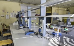 The Biochemistry laboratory, located on the ground floor of Block B on the Riello campus, is the venue for practical teaching exercises. Thirty-five workstations are available.