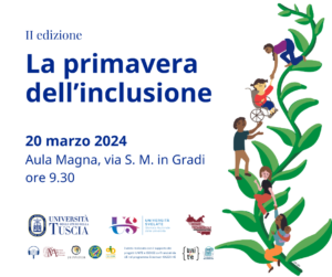 Giunta alla seconda edizione si svolgerà il 20 marzo presso l’Aula Magna dell’Università degli Studi della Tuscia “La Primavera dell’Inclusione”. Durante l’evento saranno affrontate diverse tematiche legate al tema dell’inclusione, dai disturbi dell’apprendimento ai disturbi della vista e dell’udito e saranno presentati gli ultimi due progetti portati avanti dal gruppo di Ingegneria, ISENSE e UNITE, sulle tematiche dell’inclusione. Durante l’evento saranno portate alcune testimonianze di persone e organizzazioni, a partire da quella di Floriana Filomena Ferrara, manager IBM, alla quale seguiranno quelle dell’ente nazionale sordi di Viterbo, dell’associazione italiana dislessia e dell’associazione Juppiter. Nella mattinata sarà inaugurato il nuovo percorso accessibile e inclusivo del Sistema Museale di Ateneo e, al termine dell’evento, si terrà un light lunch con l’intrattenimento di Radio Unitus.