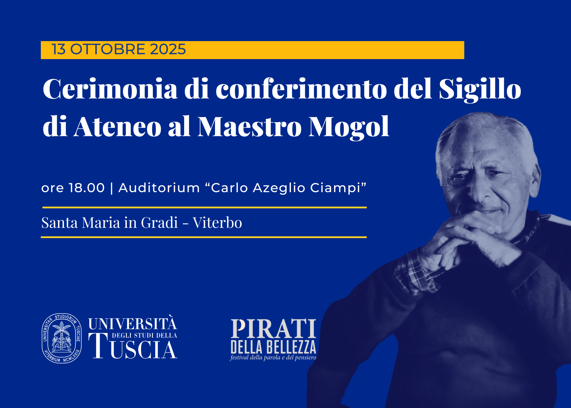 LโUniversitร degli Studi della Tuscia conferirร il Sigillo dellโAteneo al Maestro Mogol, una delle figure piรน importanti della musica e della cultura italiana. La cerimonia si terrร ย lunedรฌ 13 ottobre 2025, alleย ore 18, pressoย lโAuditoriumย โCarlo Azeglio Ciampiโ dellโAteneo. Lโevento si aprirร con lโintroduzione del Rettore Stefano Ubertini, seguita dalla laudatio e dalla consegna del Sigillo dellโAteneo al […]