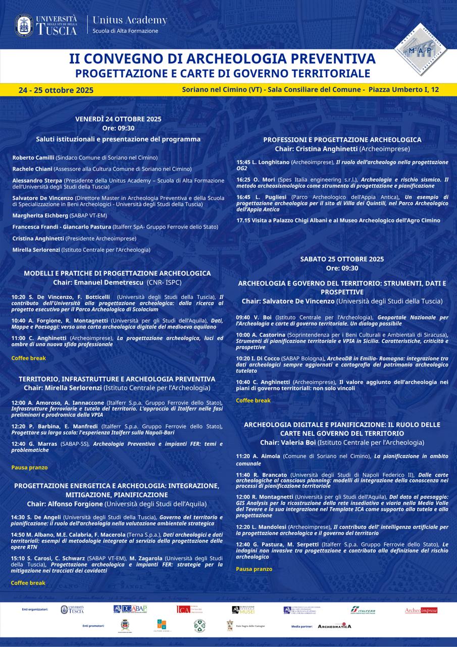 Per maggiori informazioni convegnoarcheologiapreventiva@gmail.com