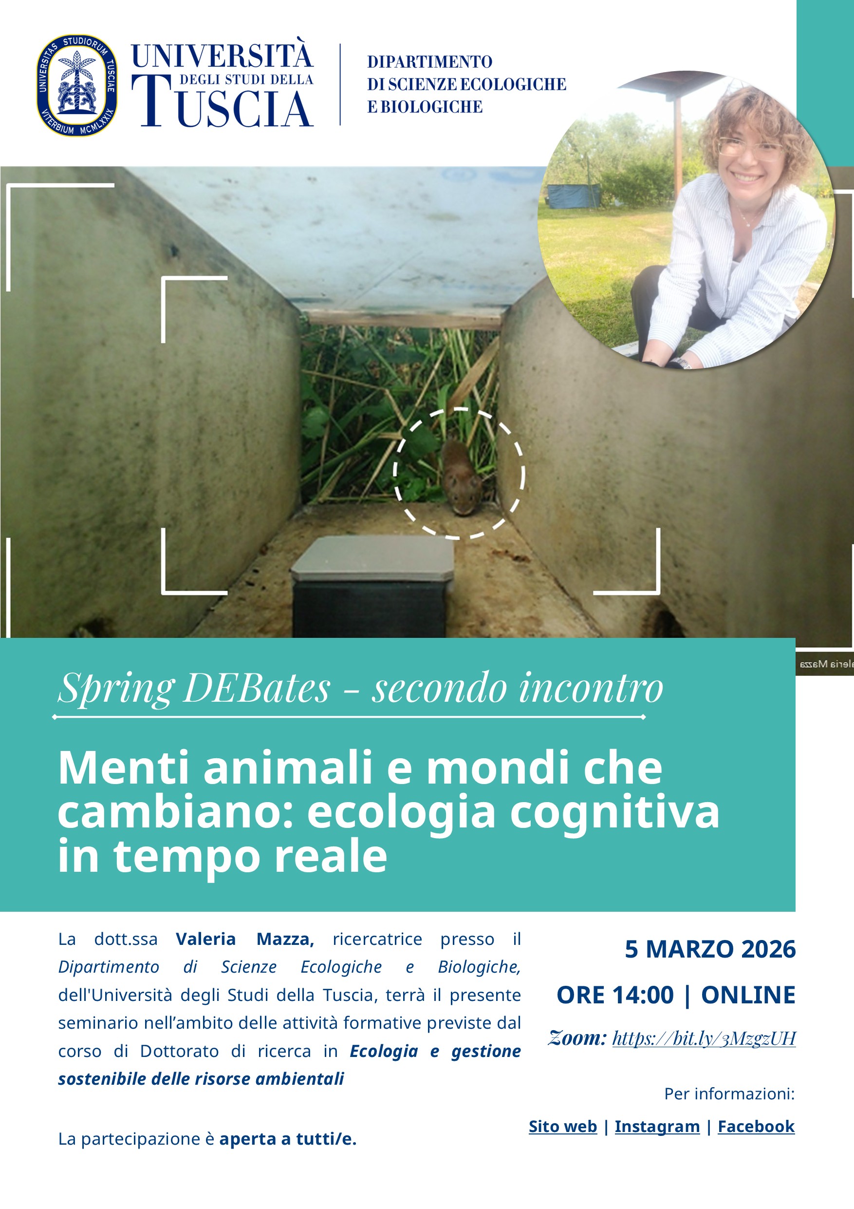Speaker: Dott.ssa Valeria Mazza, ricercatrice del Dipartimento di Scienze Ecologiche e Biologiche dell’Università degli studi della Tuscia