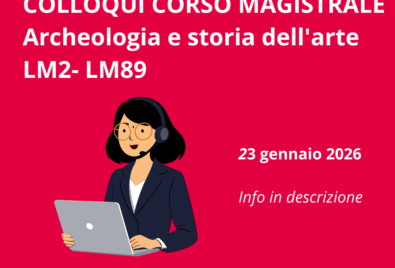 ContinuaIl prossimo colloquio di ammissione alla laurea magistrale in "Archeologia e storia dell'arte. Tutela e valorizzazione" LM2-LM89 si svolgerà in presenza e in modalità a distanza su piattaforma...