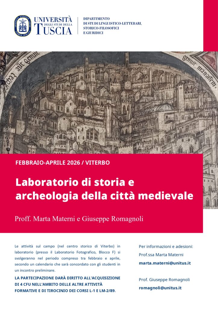Si avvisano gli studenti dell’inizio del Laboratorio di storia e archeologia della città medievale