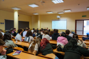 La mattina è proseguita con le attività laboratoriali che si sono tenute nelle aule del dipartimento: spazi nei quali gli studenti e le studentesse, sia universitari sia i molti provenienti dagli istituti scolastici della città, della provincia e della Regione, hanno incontrato e si sono confrontate con lingue e culture diverse dalla propria, toccando con mano ciascuna delle lingue insegnate al DISTU (arabo, cinese, francese, portoghese, russo, spagnolo, tedesco), a cui si è aggiunto l’italiano.