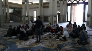 Mattina: Immersione nella Cultura Islamica (Moschea di Roma). La giornata è iniziata alle 10:15 con il punto di ritrovo all’ingresso del Centro Islamico e Moschea di Roma, luogo simbolo di dialogo e architettura moderna. La visita guidata ci ha offerto un’opportunità unica per comprendere dall’interno i fondamenti della cultura araba e della religione islamica L’atmosfera solenne e la bellezza della struttura hanno fornito il contesto perfetto per dare concretezza a concetti studiati sui libri, permettendoci di apprezzare l’importanza del luogo di culto nella vita della comunità.