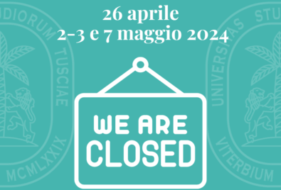 Si rende noto che domani 24/09/2025 la sede di Civitavecchia dell'Università degli Studi della Tuscia sarà chiusa, in virtu' dell'ORDINANZA N. 422 DEL 22/09/2025 del Sindaco di Civitavecchia avente...