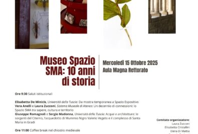 Dieci anni del Museo Spazio SMA – Università della Tuscia 15 ottobre 2025, Aula Magna del Rettorato – ViterboIl Museo Spazio SMA dell’Università della Tuscia celebra i suoi dieci anni...