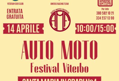 L'evento "Auto Moto - Festival Viterbo" si svolgerà il 14 aprile, dalle ore 10 alle ore 15, presso la sede di Santa Maria in Gradi.Ingresso gratuito - contatti: 380 582 10 21 / 334 237 13...