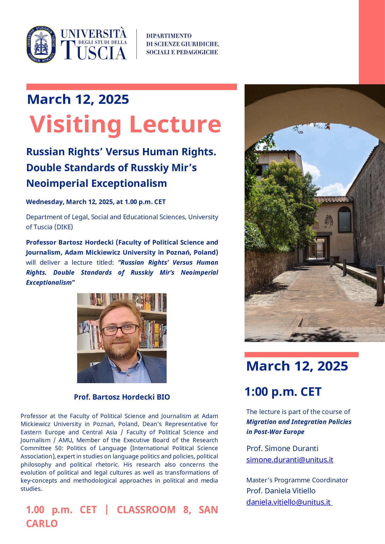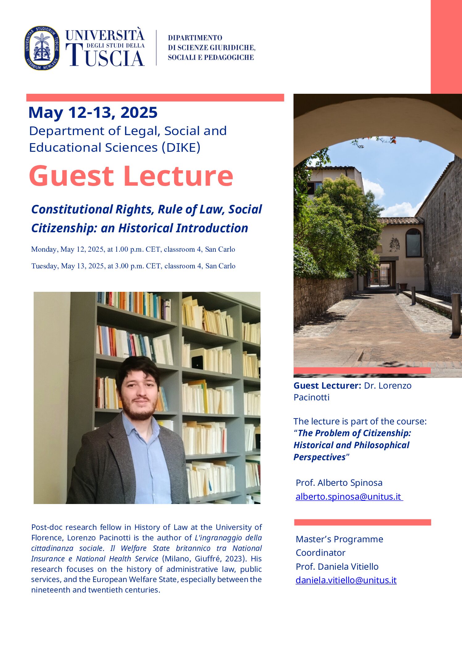 Il giorno 25 marzo 13:00 - 14:00 presso il complesso di Santa Lucia a Rieti, in Via delle Fontanelle, nelle attività del corso di laurea interateneo Tuscia – Sapienza in Economia...