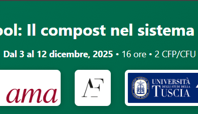 Training School: Il compost nel sistema One Health Dal 3 al 12 dicembre, 2025 • 16 ore • 2 CFP/CFU La Training School approfondisce il ruolo del compost...