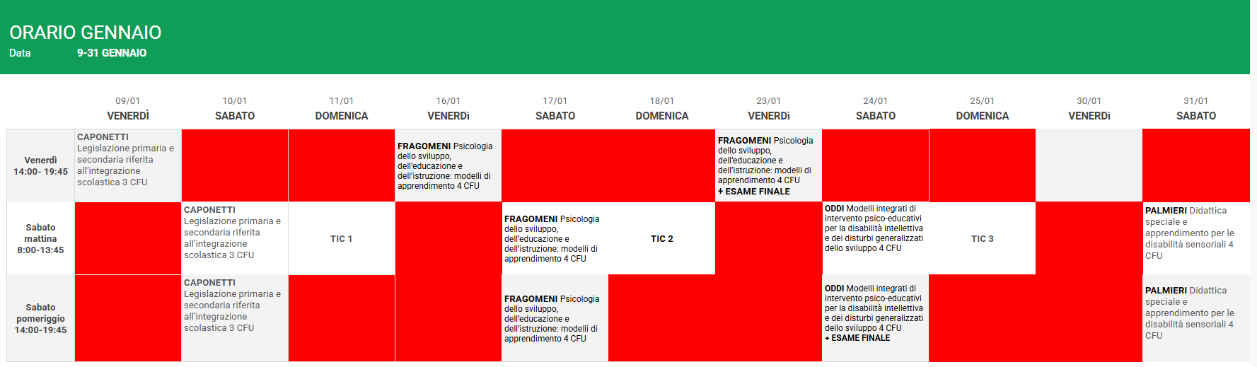 Si precisa che la data del 30 gennaio risulta ancora vuota e in via di aggiornamento.