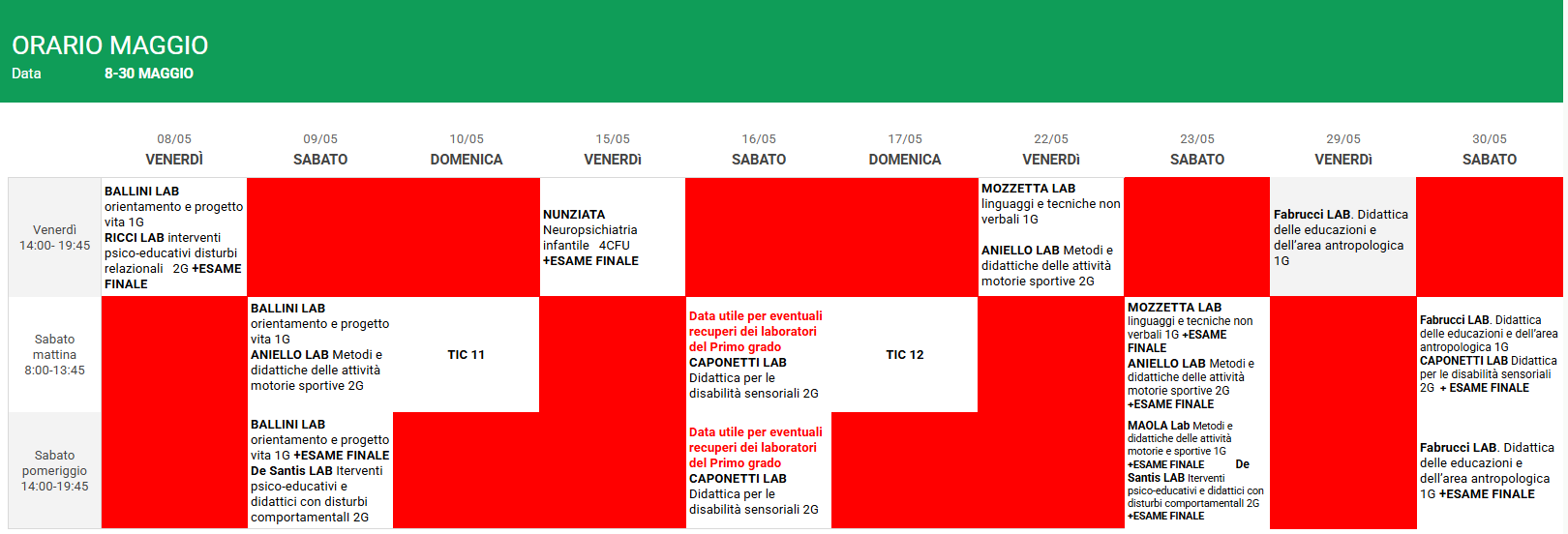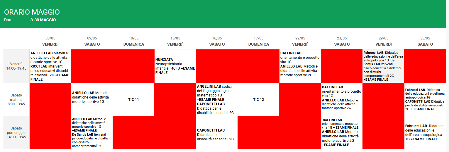 Si comunica ai corsisti del X ciclo TFA sede di Rieti, che le lezioni avranno fine il giorno 31 maggio 2026 come da calendario pubblicato.